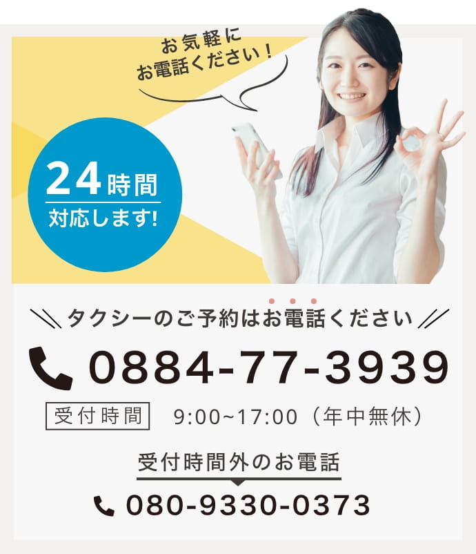 ご予約や営業時間外の送迎といったご相談など、お気軽にお電話ください。
